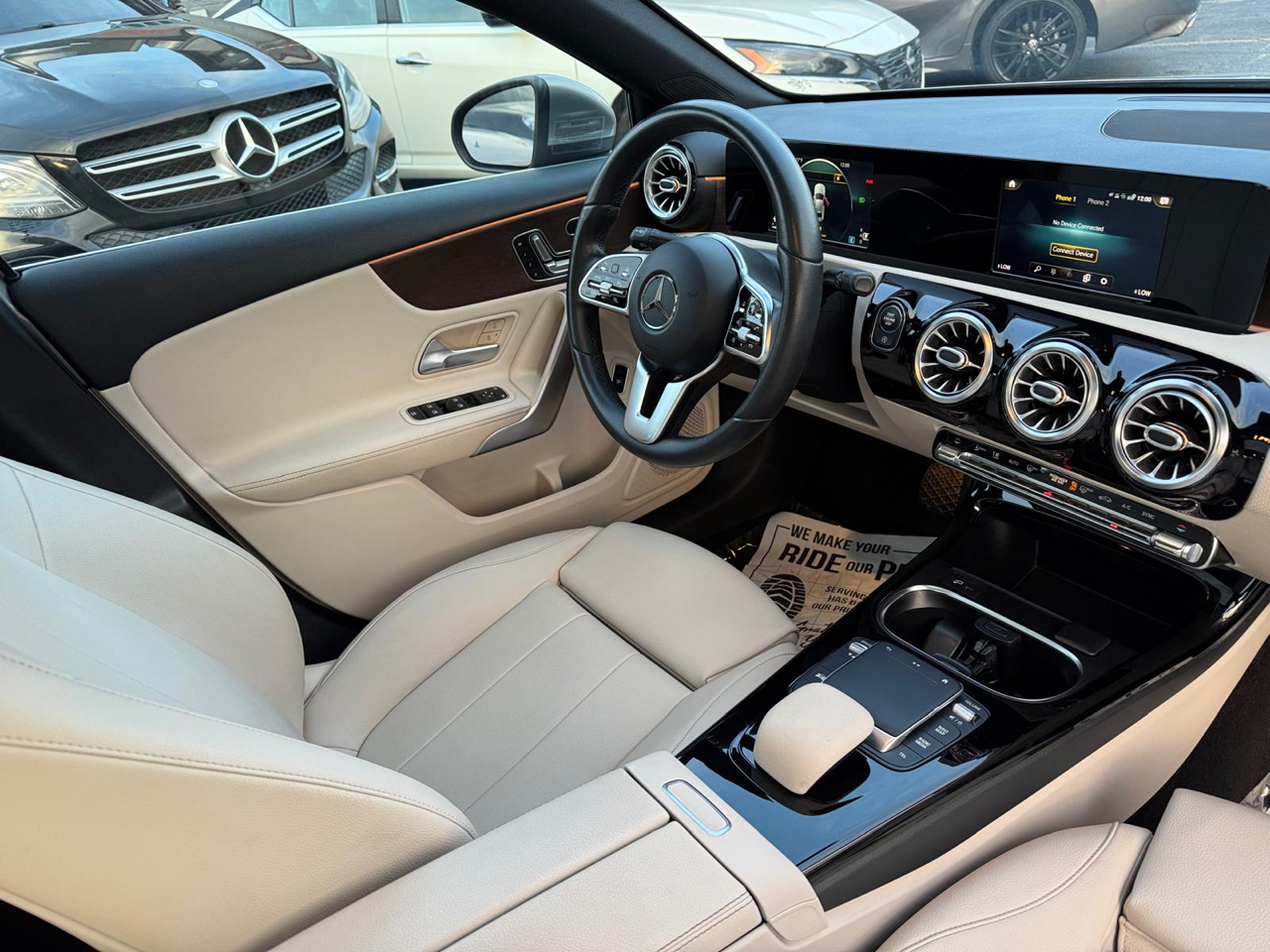 Step inside and enjoy the premium features such as the express open/close sliding glass sunroof, voice-activated dual-zone air conditioning, and the advanced Mercedes me connect Tracker System. The elegant interior boasts leatherette door trim and a full cloth headliner, creating a sophisticated atmosphere for you and your passengers.